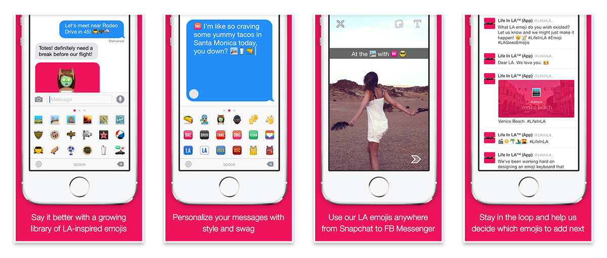 Life in LA is a fun and expressive project designed and developed by Vicc Alexander. Life in LA features more than 50 hand-crafted emojis, expressing both the glamorous and not-so-glamorous things about life in the City of Broken Dreams. From the iconic rap artist Tupac, and the beauty of Rodeo Drive, to the obsession with plastic surgery, and the burning heat waves, Life in LA makes sure to cover what it truly means to live in LA.